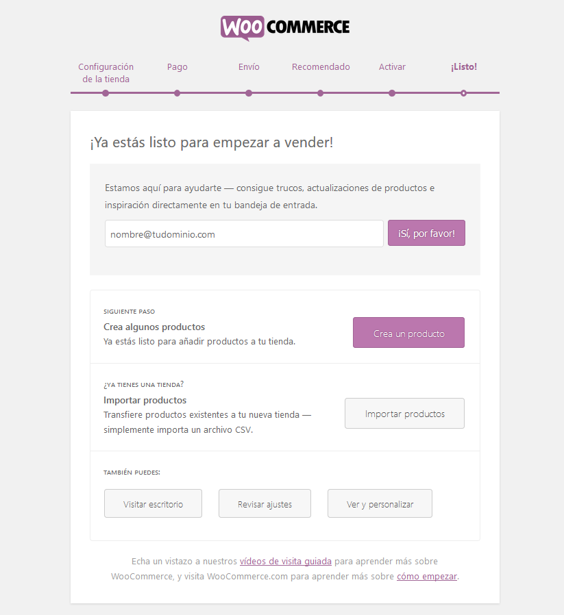 Al finalizar el asistente de configuración, tendrás la oportunidad de ajustar aspectos importantes de tu tienda que influirán de forma directa en cómo interactuarán los clientes con tu web y cómo se gestionarán tus productos y pedidos. Asegúrate de investigarlo todo y de aprovecharlos al máximo, ¡pueden marcar la diferencia en tus beneficios!
