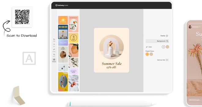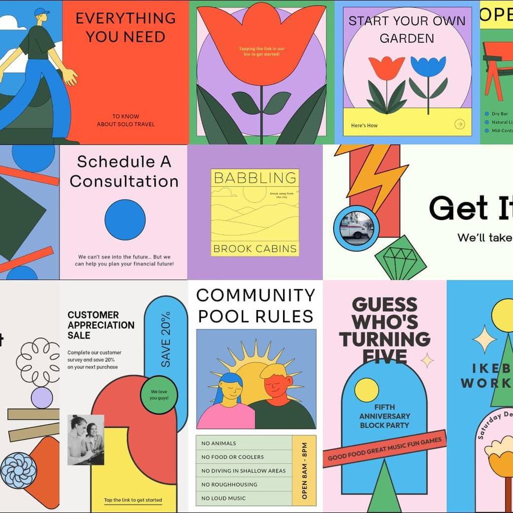 Keeping up to date on the latest graphic design trends is easy. GoDaddy Studio is full of the latest concepts and ideas to give you instant inspiration. Attending industry events and conferences, reading design newsletters, and listening to expert podcasts can also help keep you up to date.