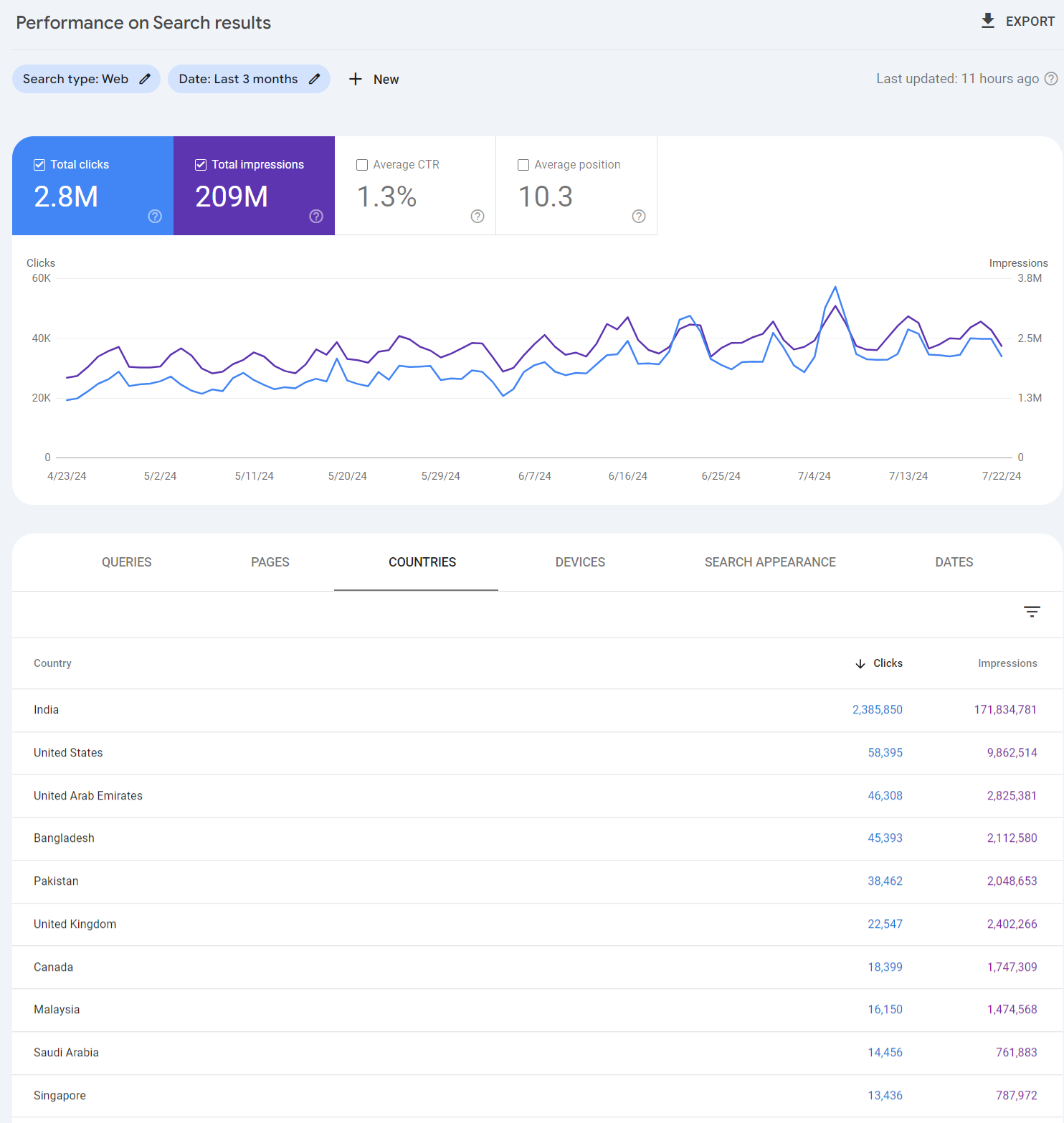 Google Search Console is a great choice if you're seeking a free and easy to use analyzing option. It shows you how Google sees and evaluates your website. You can see the site's ranking for target keywords in the "Performance” section. It gives information like the user's location, the device they used, and the amount of visits from each keyword.