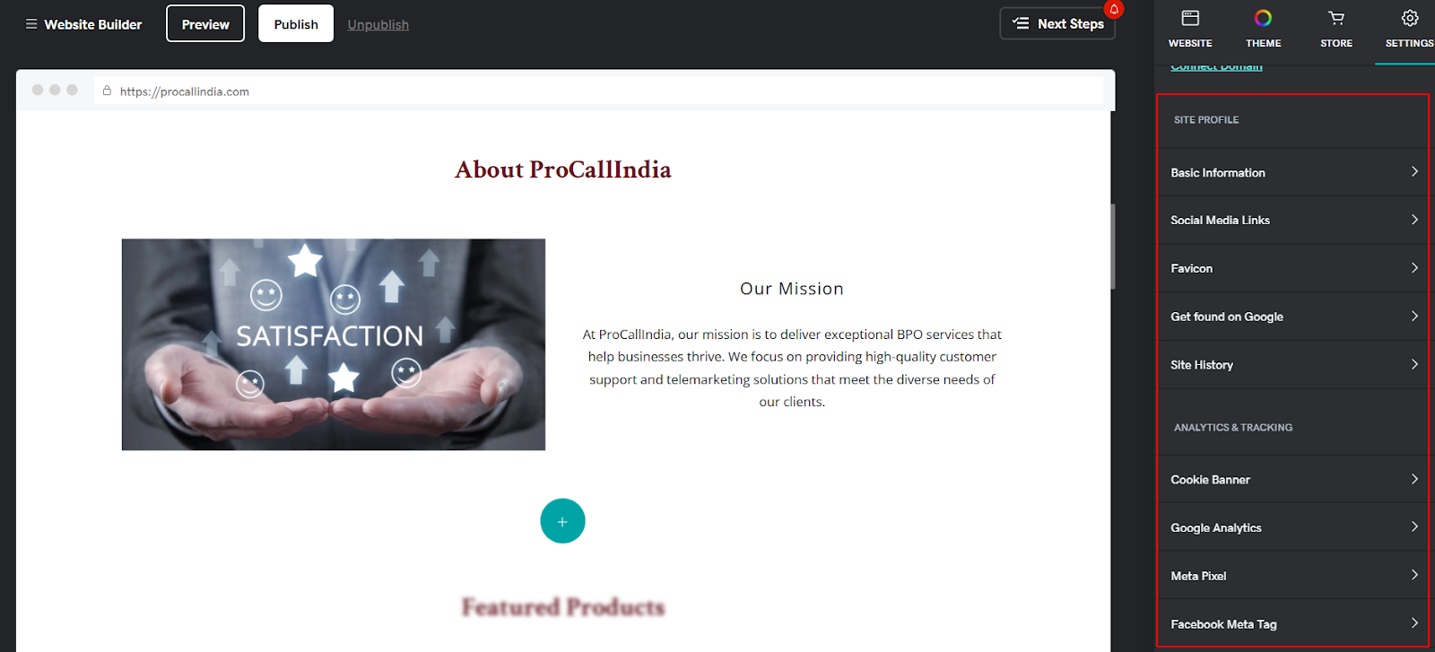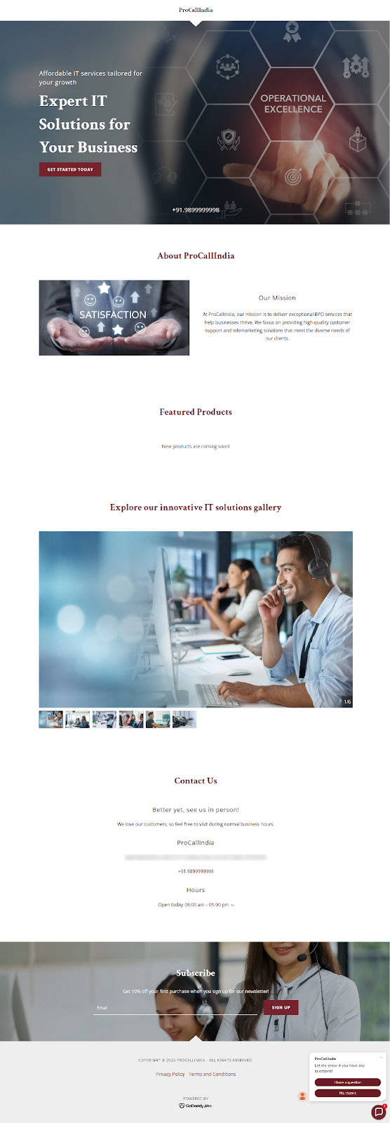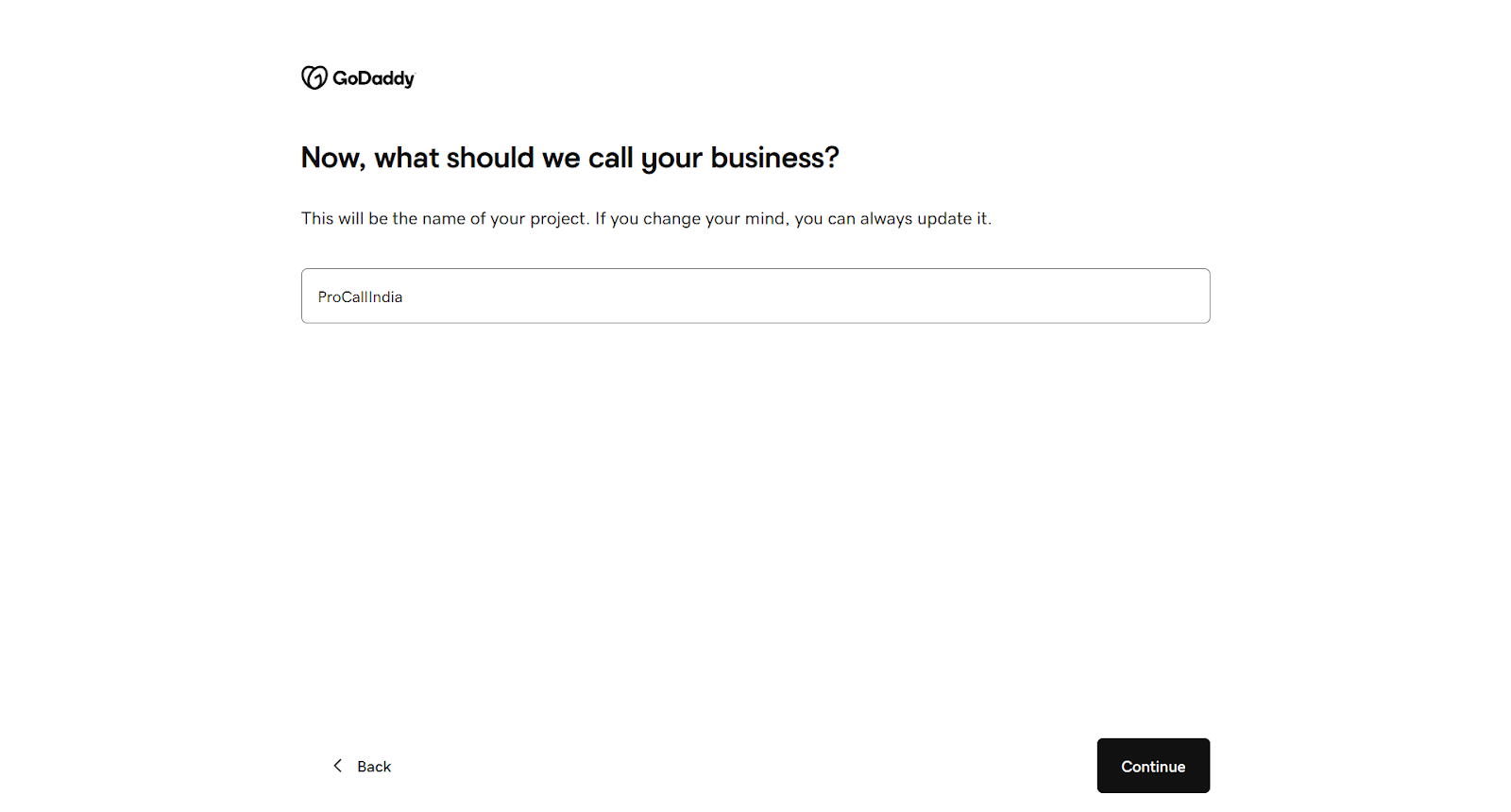 Enter the official name of your company that you want to use on your website. In this example, it's ProCallIndia. On your website, this becomes the brand header.