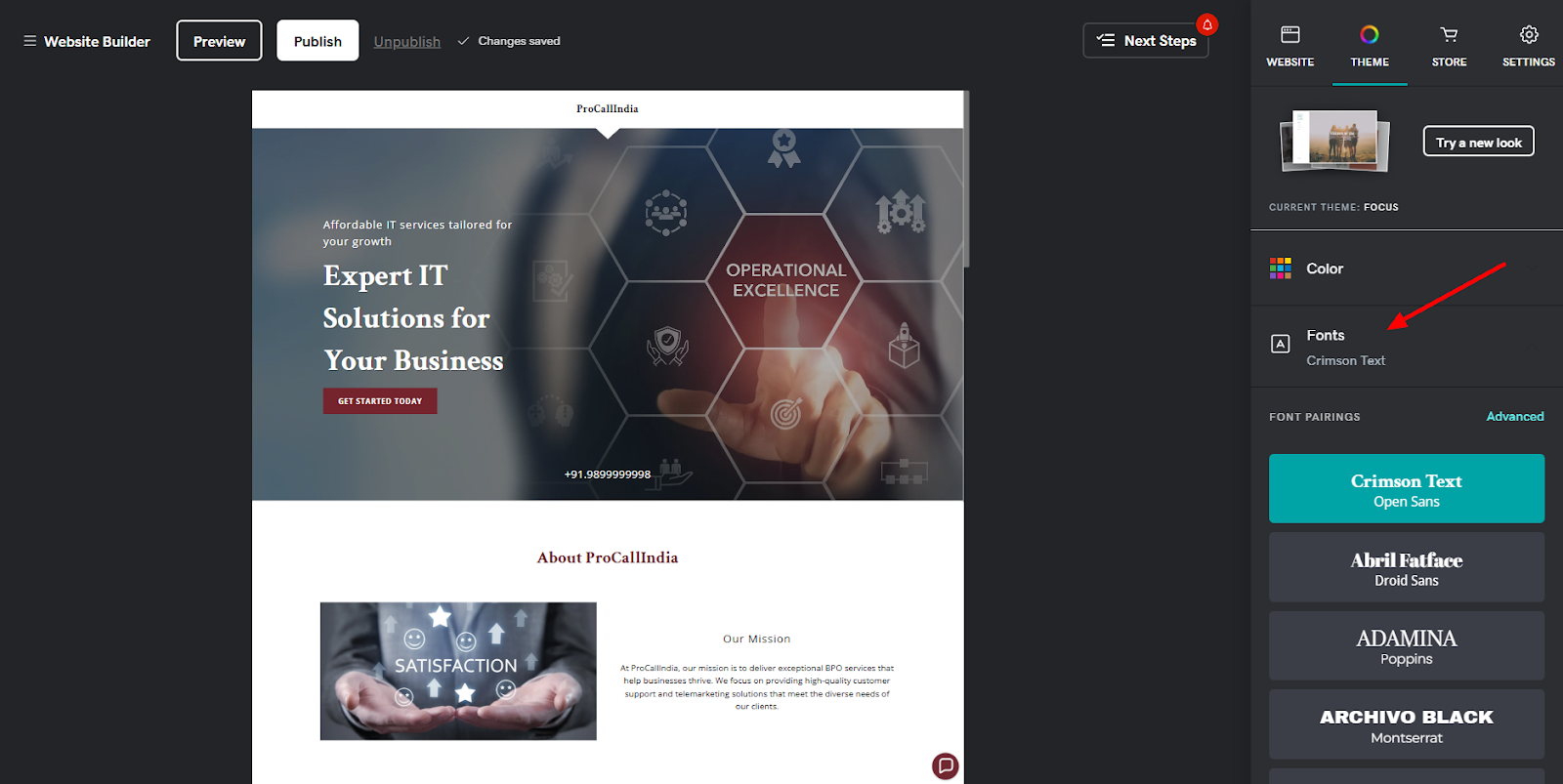 Check the responsiveness, speed, and content flow of your whole website by previewing it. If you're satisfied, click Publish, and your website will be online.