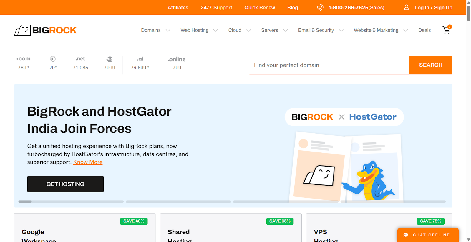 - Domain transfers: Domain transfer starts at ₹969.
