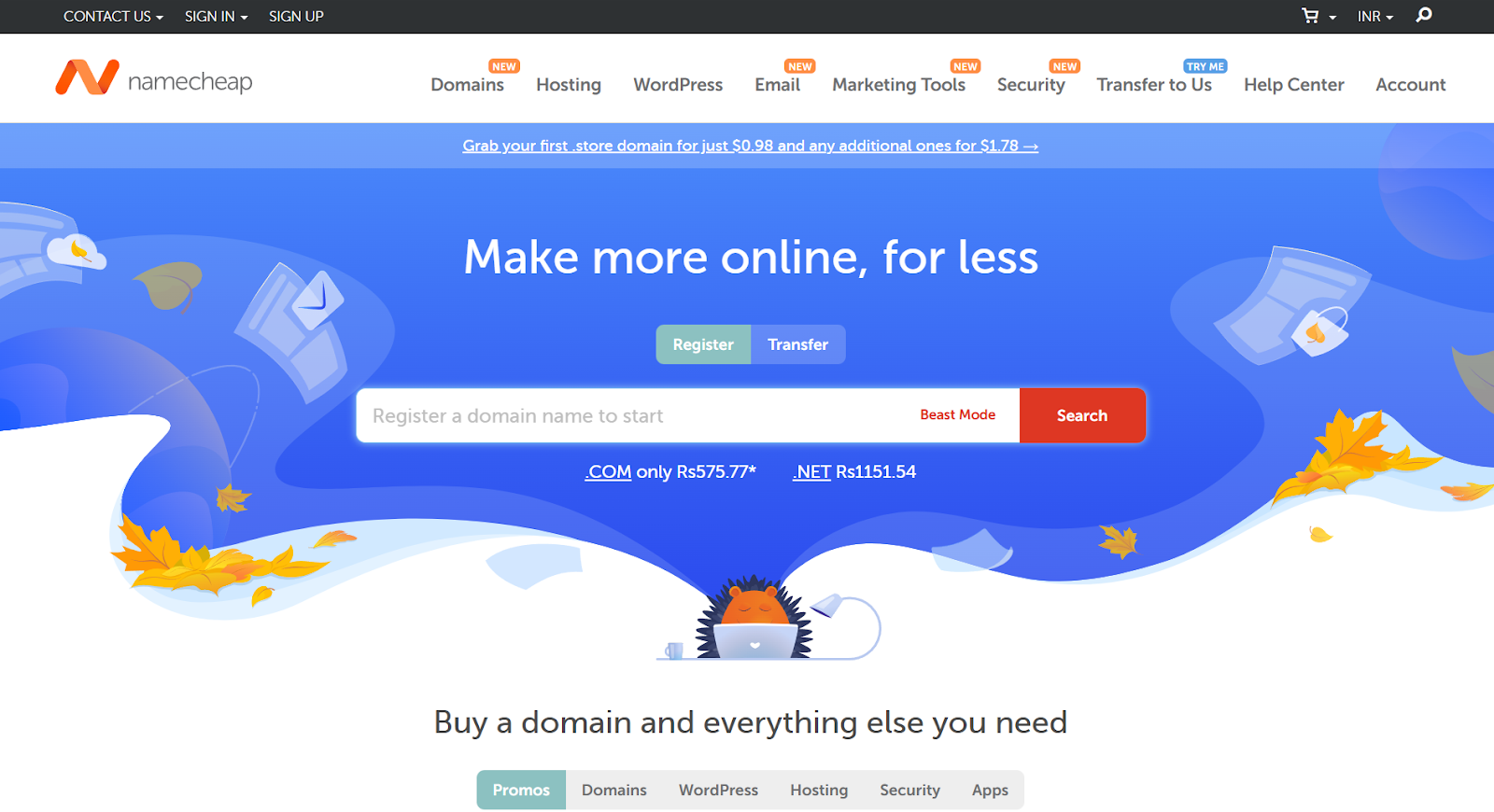 | .com | ₹399.00 | ₹1,299.00/yr |