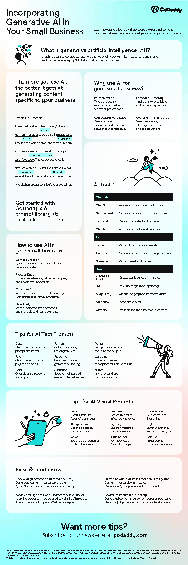 To help you navigate the realm of generative AI, we've created an AI cheat sheet for small businesses. This cheat sheet provides valuable tips and tricks for leveraging AI to its fullest potential. It offers guidance on generating text and visuals, ensuring you get the best possible results from your AI systems.
