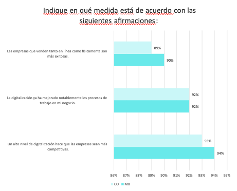 La encuesta revela que el 94% de los emprendedores mexicanos considera que la digitalización es una ventaja competitiva clave. La integración de herramientas digitales no solo permite una mayor visibilidad en el mercado, sino que también facilita la automatización de procesos fundamentales para competir en el entorno actual.