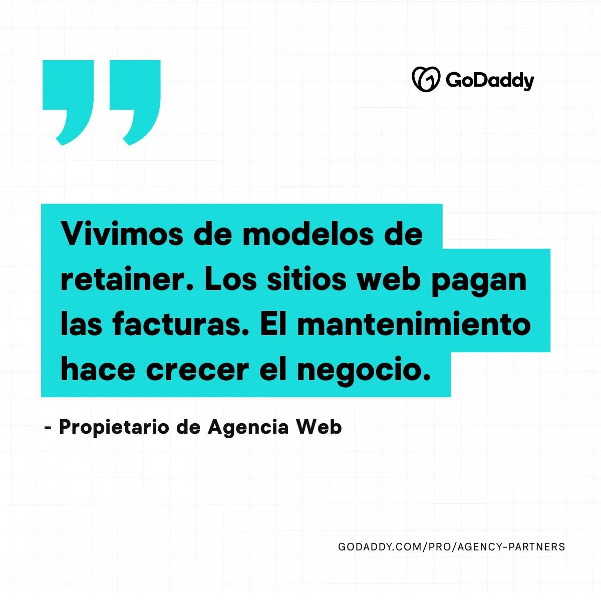 Y por eso en GoDaddy seguimos invirtiendo en herramientas, insights, programas y comunidad que ayudan a los profesionales digitales a hacer su mejor trabajo. Ya sea con The Hub, nuestra plataforma de hosting administrado para WordPress, los Paquetes de mantenimiento de sitios o el Programa de Socios de Agencia de GoDaddy, nuestra misión es simple: