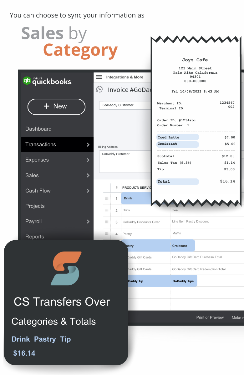 Many businesses rely on a combination of different tools and platforms to manage their operations. The lack of integration between these systems can lead to inefficiencies and siloed information. Commerce Sync seamlessly connects GoDaddy Payments with popular accounting software such as QuickBooks Online, QuickBooks Desktop and Xero, ensuring that sales data flows smoothly into the accounting system. This integration streamlines processes and improves overall operational efficiency.