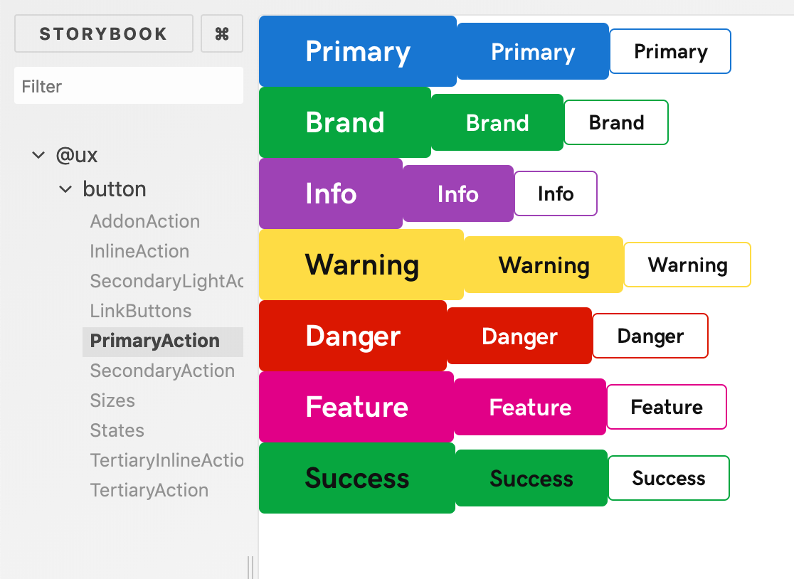 That’s it! Here is @exemplar/storybook showing all of GoDaddy’s primary action buttons at once: