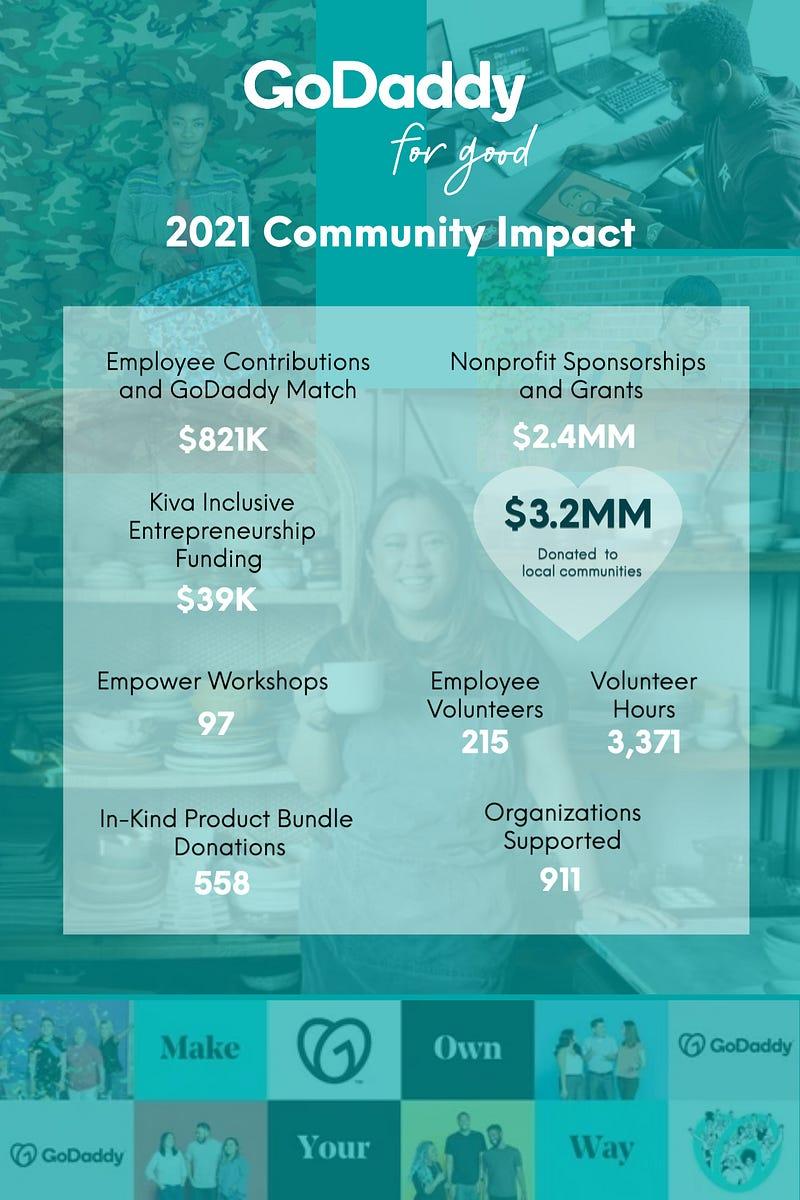 GoDaddy employees and community partners have continued to show up in the community and make a difference where it matters. Together, we donated $3.2M back into our communities and volunteered thousands of hours to support those who needed it most.