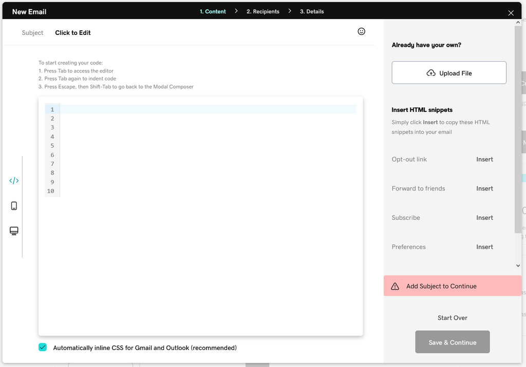 Whether you’re a coding pro or HTML novice, our user-friendly interface simplifies the process, making it easier than ever to create striking emails that effectively represent your brand and engage your readers.