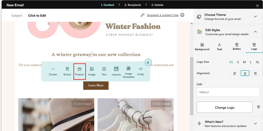For those using the Commerce-tier Online Store plan, you now have the ability to include products from your online store directly into your email newsletters. This new feature provides a direct link between your shop and your email recipients.