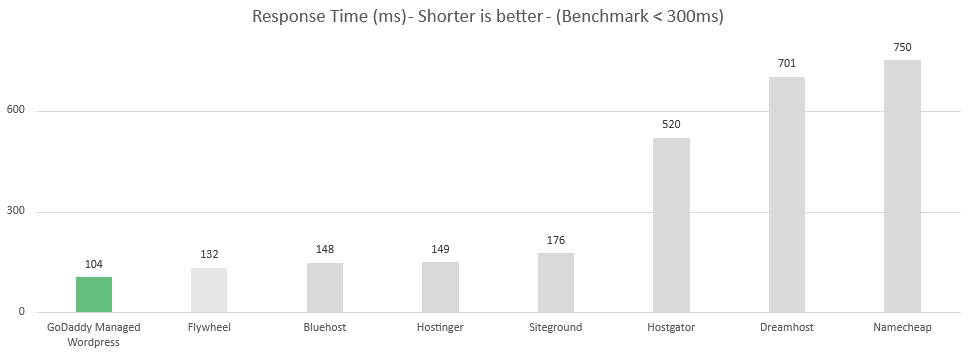 Over the past year, we asked Catchpoint to conduct global performance and uptime monitoring, comparing GoDaddy Managed Hosting for WordPress with alternate Hosting for WordPress providers, including but not limited to Flywheel, Siteground, Bluehost, Hostgator, Namecheap, Hostinger, and Dreamhost.*