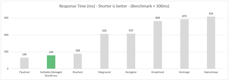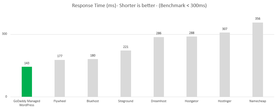 North America: In North America, GoDaddy Managed Hosting for WordPress delivered average response times that were faster than any other hosting provider we had tested in this benchmark.