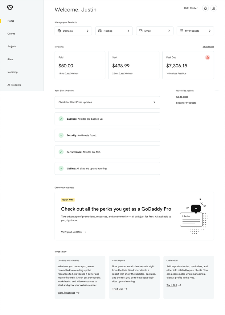 We built The Hub by GoDaddy Pro to streamline workflows and shave time off tasks that typically eat up a workday.