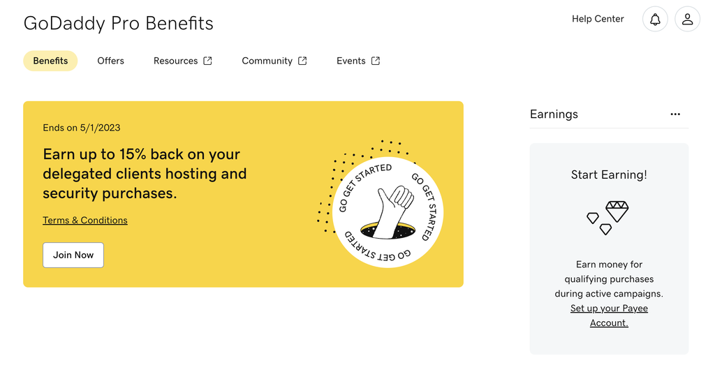 The GoDaddy website now features two new pages that highlight the benefits of GoDaddy Pro membership and the discounts it includes.