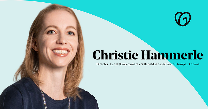 Hi! My name is Christie Hammerle, and I work on GoDaddy’s legal team, handling employment and benefits matters for the company. I have been with GoDaddy almost six years — and prior to becoming a full-time employee, I was a contractor (on two separate occasions) for my current team! I fell in love with GoDaddy during my contractor days, and my appreciation for our people, our culture, and our company mission has only deepened. I can honestly say that I’ve never had a boring day at GoDaddy, and no two days have been the same. My role engages me, challenges me, and helps me grow as an attorney and as a person.