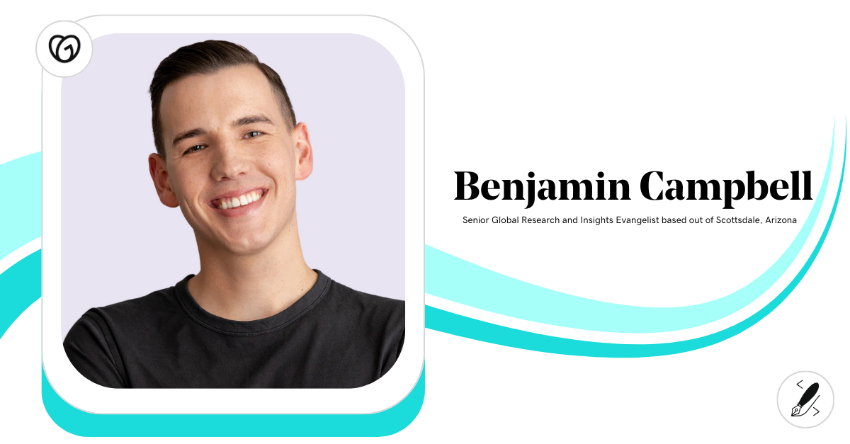Ben Campbell, Senior Global Research and Insights Evangelist, here! That’s a fun title, right? Let me break it down for you. We like to think of my role as a scalable pie chart, 50% research and 50% showcasing our studies — which essentially means making sure our research is seen by our internal audiences. And those percentages change based on need!