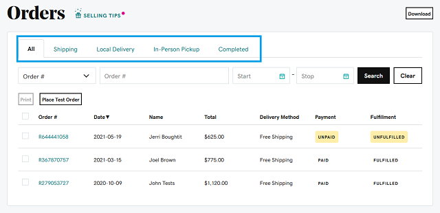 Also updated for Commerce customers, you can now more effectively manage orders, specifically payment status and fulfillment status. Also, additional tabs are displayed for easier management by delivery types