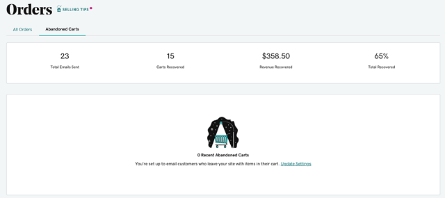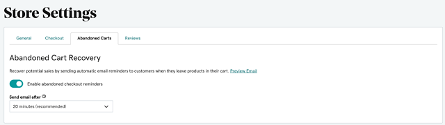Websites + Marketing Ecommerce now offers new abandoned cart recovery settings. We’ve split the list of abandoned carts and the abandoned cart settings into separate access points. Additionally, we’ve added more entry points to your abandoned cart information in order to better improve your accessibility.
