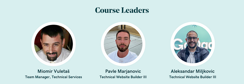Nemanja Todorovic — The course helped me in so many ways… First of all, the cooperation with colleagues was flawless. I became aware of a very positive social climate within the company, where I feel safe, free, and confident in addressing and removing any obstacles or doubts, regarding my work. Then, I got to know the IT culture, which seemed foreign to me, considering I was a freelancer for five years. The course allowed me to perceive it in a clearer light. The expertise of the teachers, who are more than adequately trained for the positions they’re in, provided us with invaluable knowledge. A special thanks to Pavle, Aleksandar and Miomir!