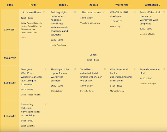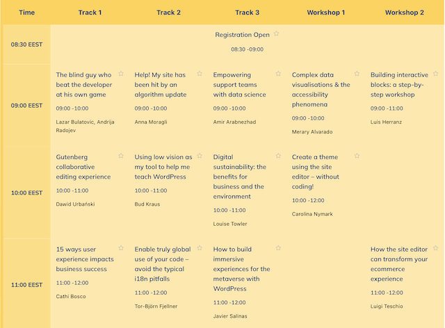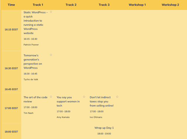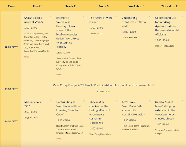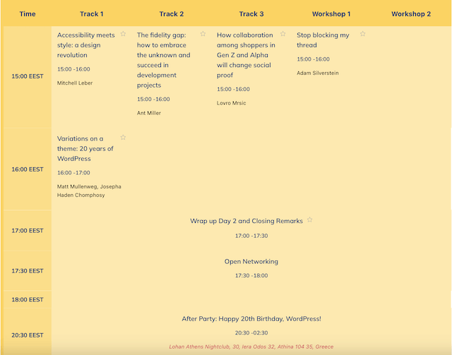 If you want to get a feel for how the tracks and sessions were organized for this year’s event, take a peek at the screenshots of the schedule listings below to view all the details.