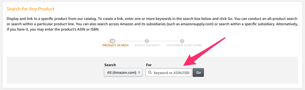 This will take you to a screen where you can search for a product. You can enter a search term that’s fairly generic, such as “headphones,” or you can search for a specific brand, model or product. For example, if you’re creating an affiliate link for a review, you can search for the term “headphones,” or more specifically, for the exact product you’re reviewing, like “Sony Noise Cancelling Headphones.”