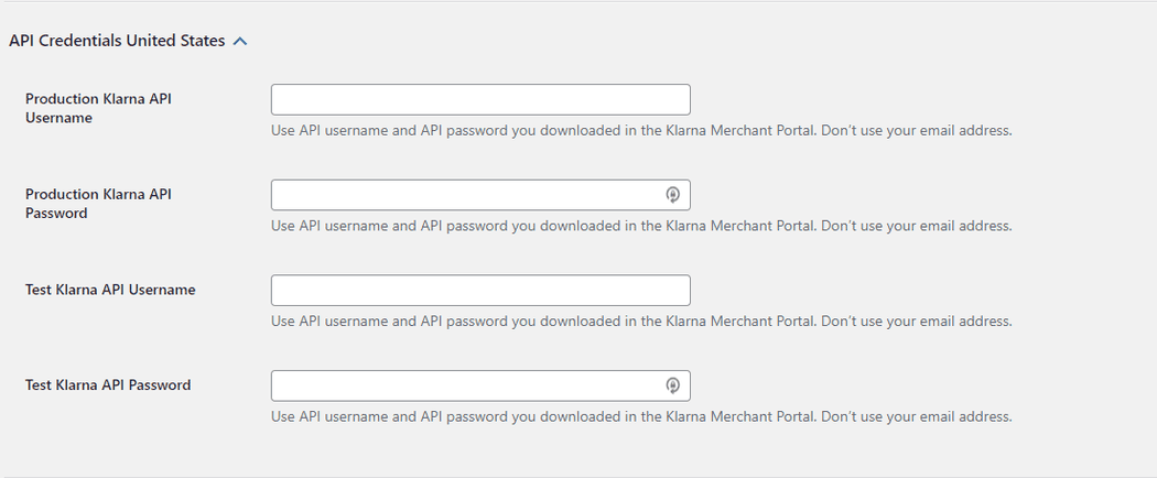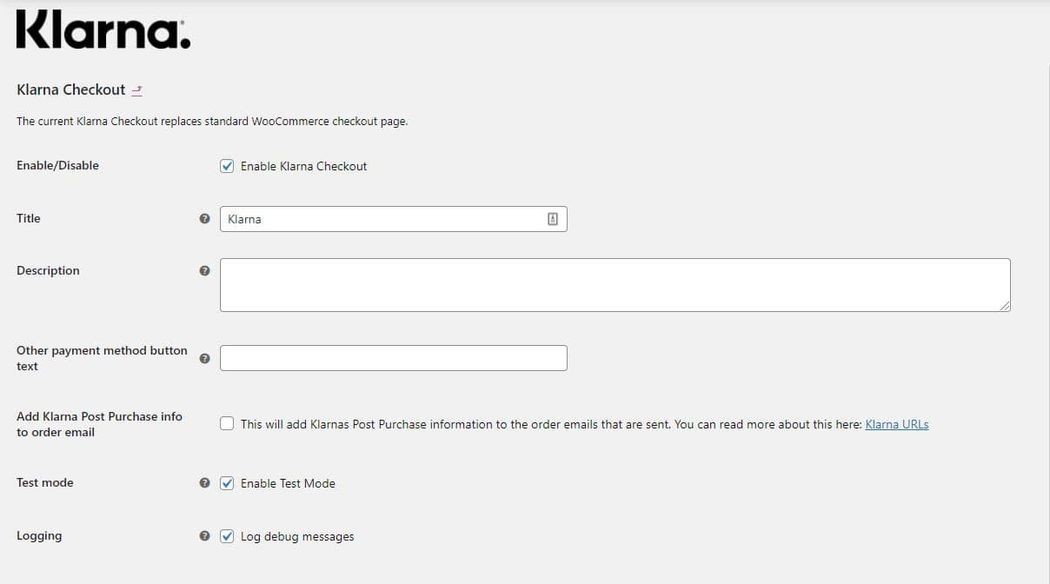 To test the payment gateway using test API keys, check Enable Test Mode. After you confirm that the gateway is working properly, return to the API Credentials where you will enter your Klarna API details.
