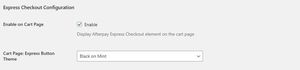 With the API configured, you will want to enable Express checkout. With Express checkout, customers can select Checkout with Afterpay from the cart page and Afterpay will pre-fill the shipping and billing details. By doing so, customers are able to move their orders much faster and can complete their orders with a single click.