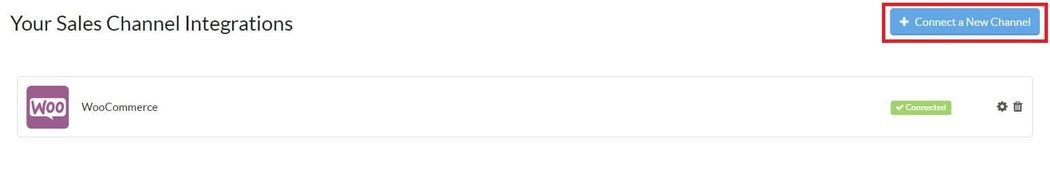 To connect WooCommerce, you need the Sellbrite WooCommerce plugin. Go to Settings > Sales Channel Integrations and select Connect a New Channel. Scroll down to the Shopping Carts section and click WooCommerce.