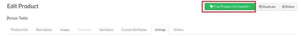 To list a product on Walmart, open the Edit Product page. Click the dropdown for List Product on Channel.