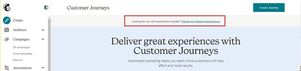 Then you can go to the Customer Journeys page or the Classic Automations builder to set up your campaigns.