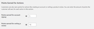 If you want to rewards points for actions other than purchases, you have a few options. Specifically, you can choose to reward your customers with points for signing up for a store account or leaving a review for a past order.