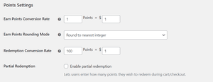 Another setting you can potentially configure is the Partial Redemption option. With this feature you can give shoppers the freedom to choose how many points they want to redeem. For instance, if a member has 100 points and they are buying an item whose total value is worth 75 points.