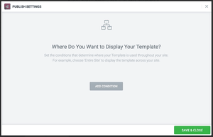 When you’re finished with the customizations, click Publish. Elementor will then prompt you to set the conditions that determine when the template is used.