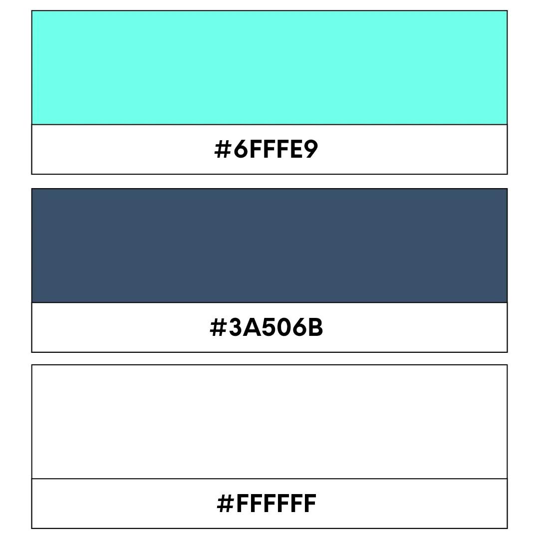 Aqua code: #6FFFE9, Denim code: #3A506B, White code: #FFFFFF