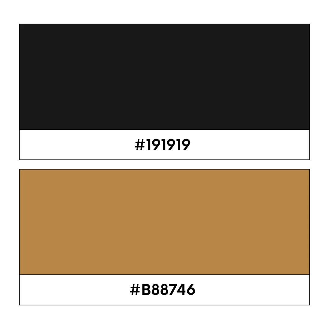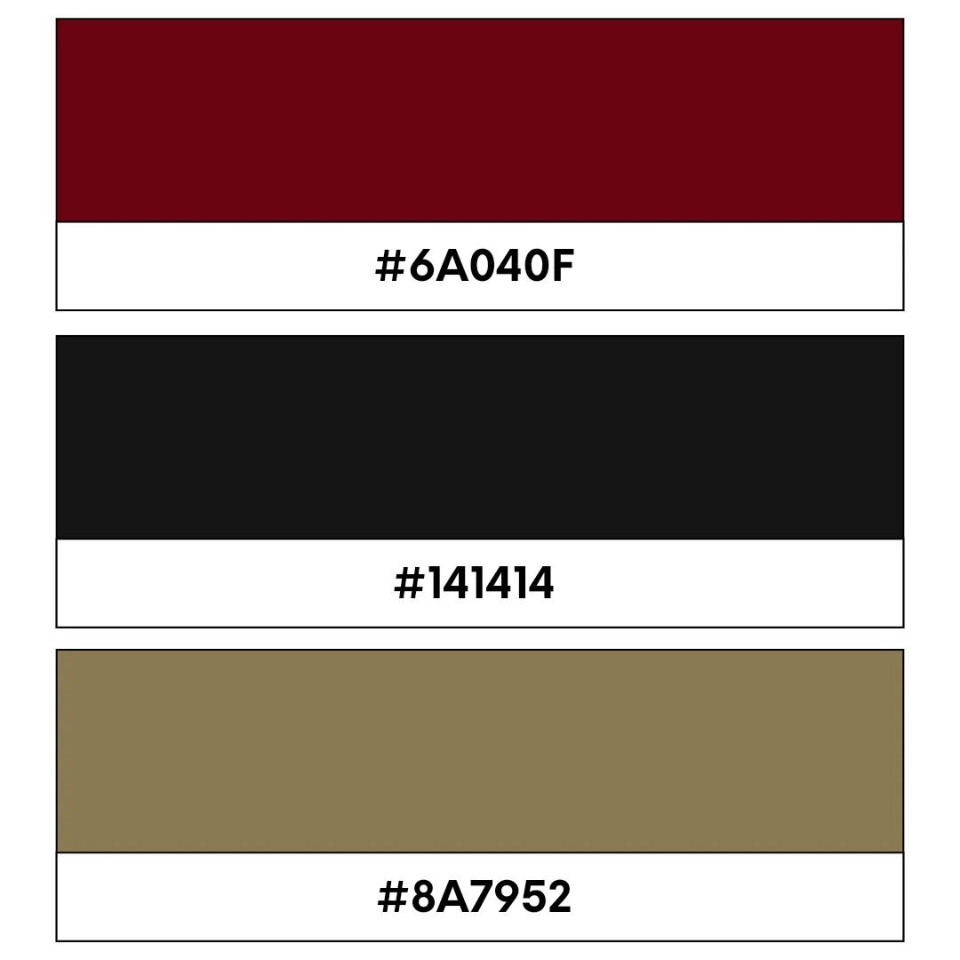 Red code: #6A040F, Black code: #141414, Gold code: #8A7952