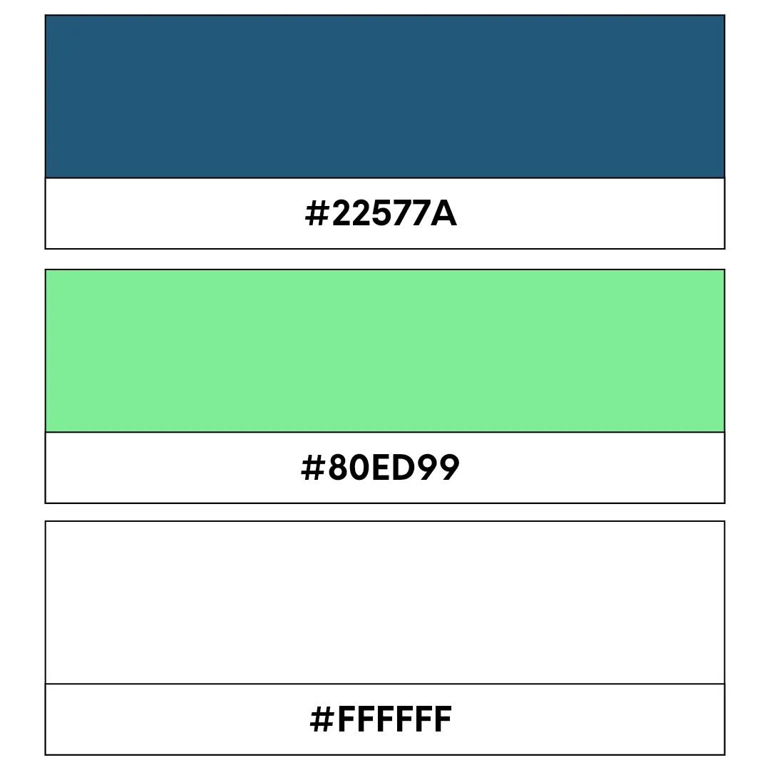 Blue code: #22577A, Green code: #80ED99, White code: #FFFFFF