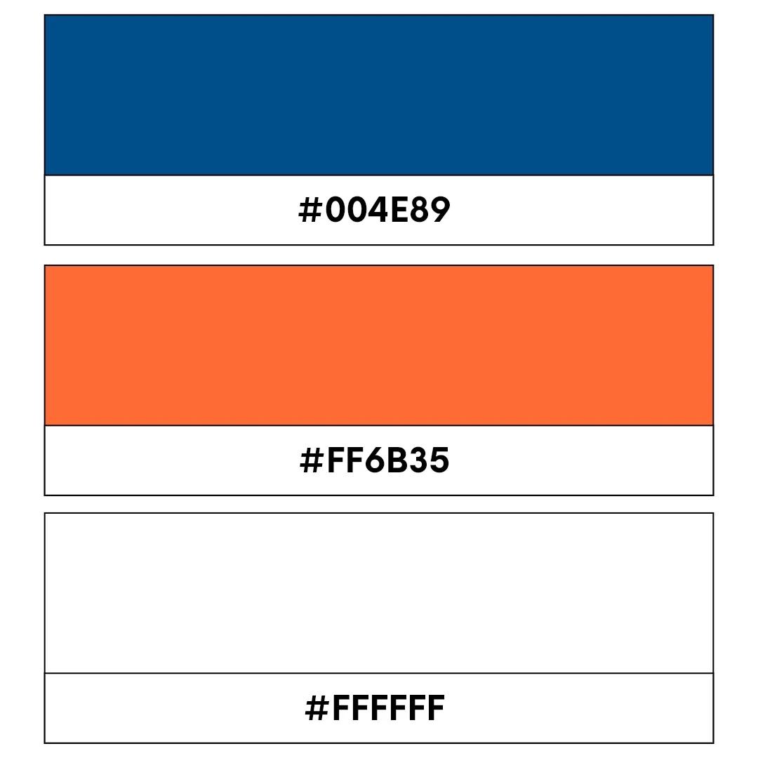 Blue code: #004E89, Orange code: #FF6B35, White code: #FFFFFF