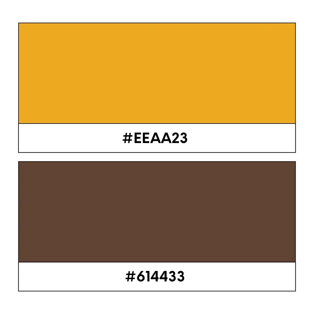 Mustard yellow code: #EEAA23, Brown code: #614433
