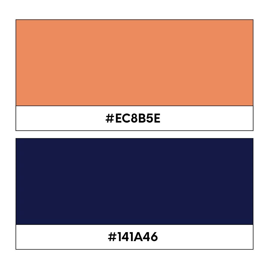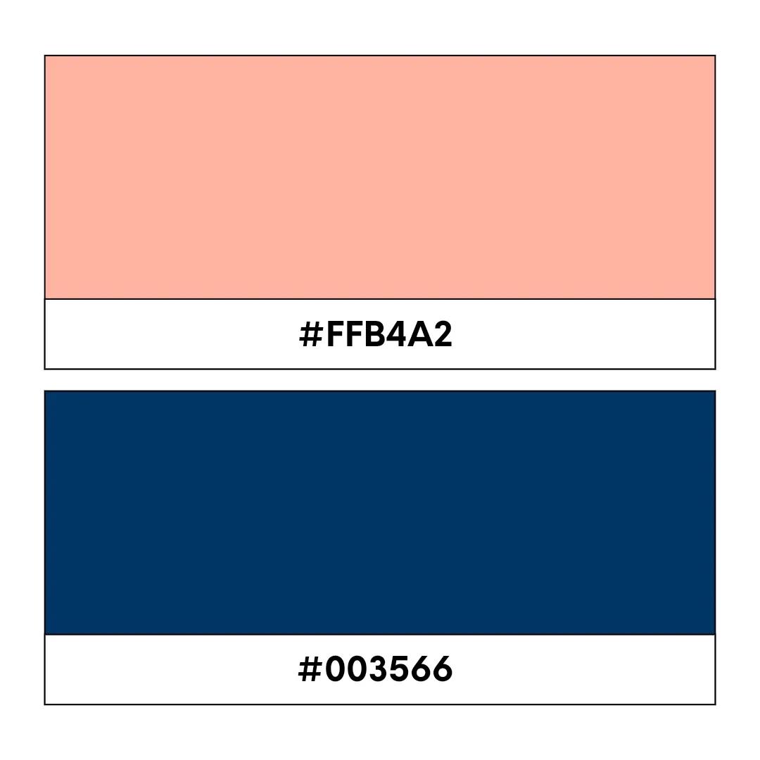 Coral and navy blue blend beautifully for a bold and head-turning color scheme. The vibrancy of the coral adds energy and enthusiasm, while the classic navy blue brings a sense of trust and reliability to the party. This deep combination is perfect for quirky brands in the verticals of food, hospitality, nightlife, and entertainment.