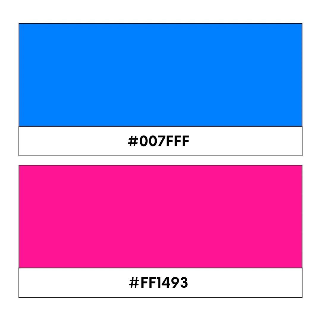 Electric blue code: #007FFF, Neon pink code: #FF1493