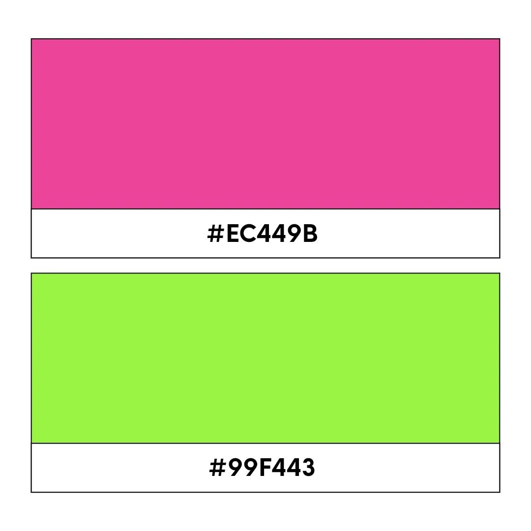 This big-hitting pairing is like a party for your eyeballs. Green and pink are classically a great pairing and with neon hues thrown in the mix, the green accents the pink to create a massive color scheme. This is the perfect pairing for trendy brands and businesses with an edge who are looking to make a big, big statement.