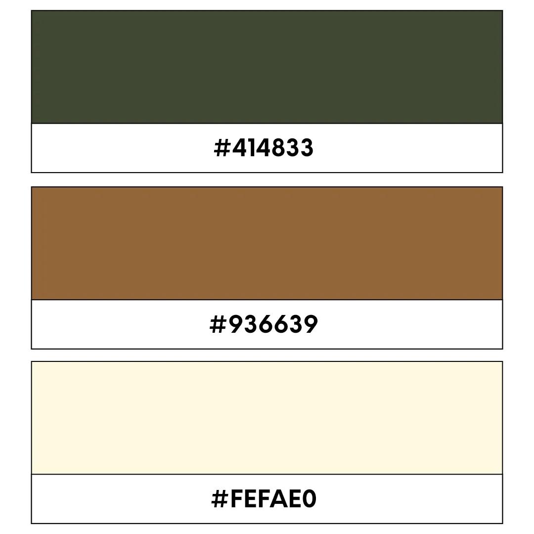 Green code: #414833, Brown code: #936639, Cream code: #FEFAE0