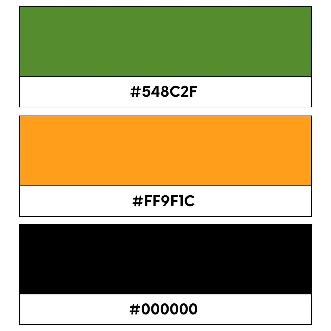 Green code: #548C2F, Yellow code: #FF9F1C, Black code: #000000