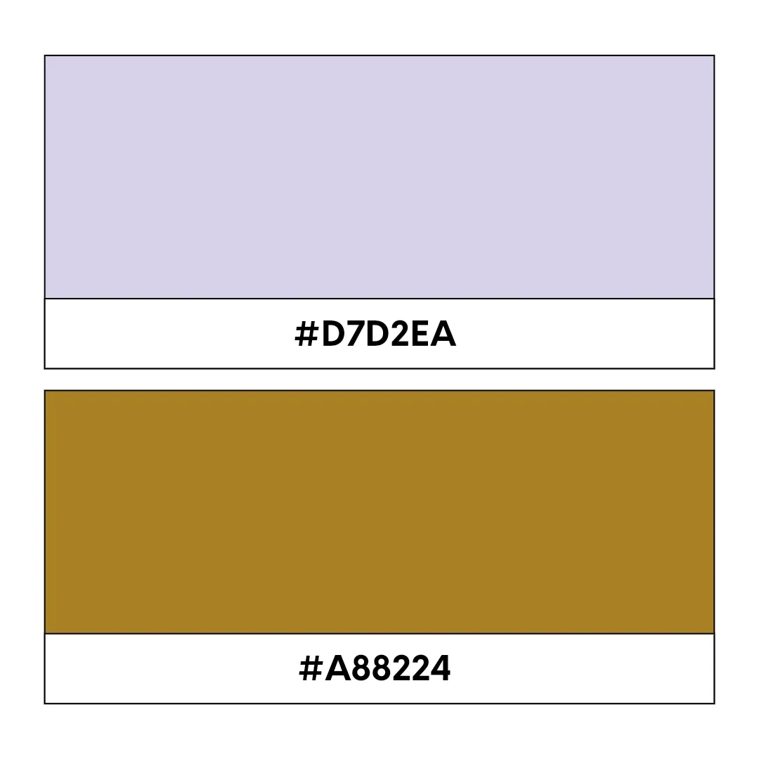 Lavender code: #D7D2EA, Gold code: #A88224