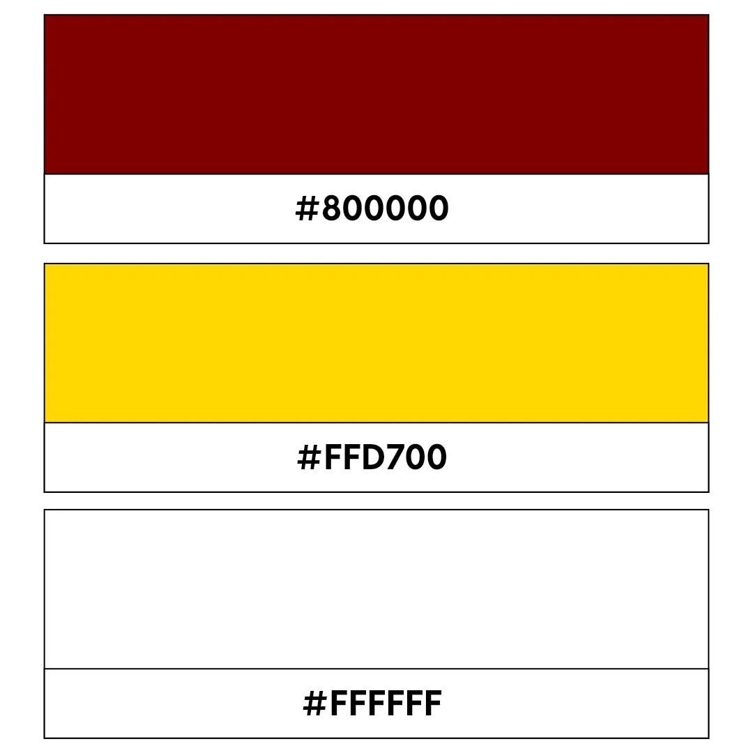 Maroon code: #800000, Gold code: #FFD700, White code: #FFFFFF