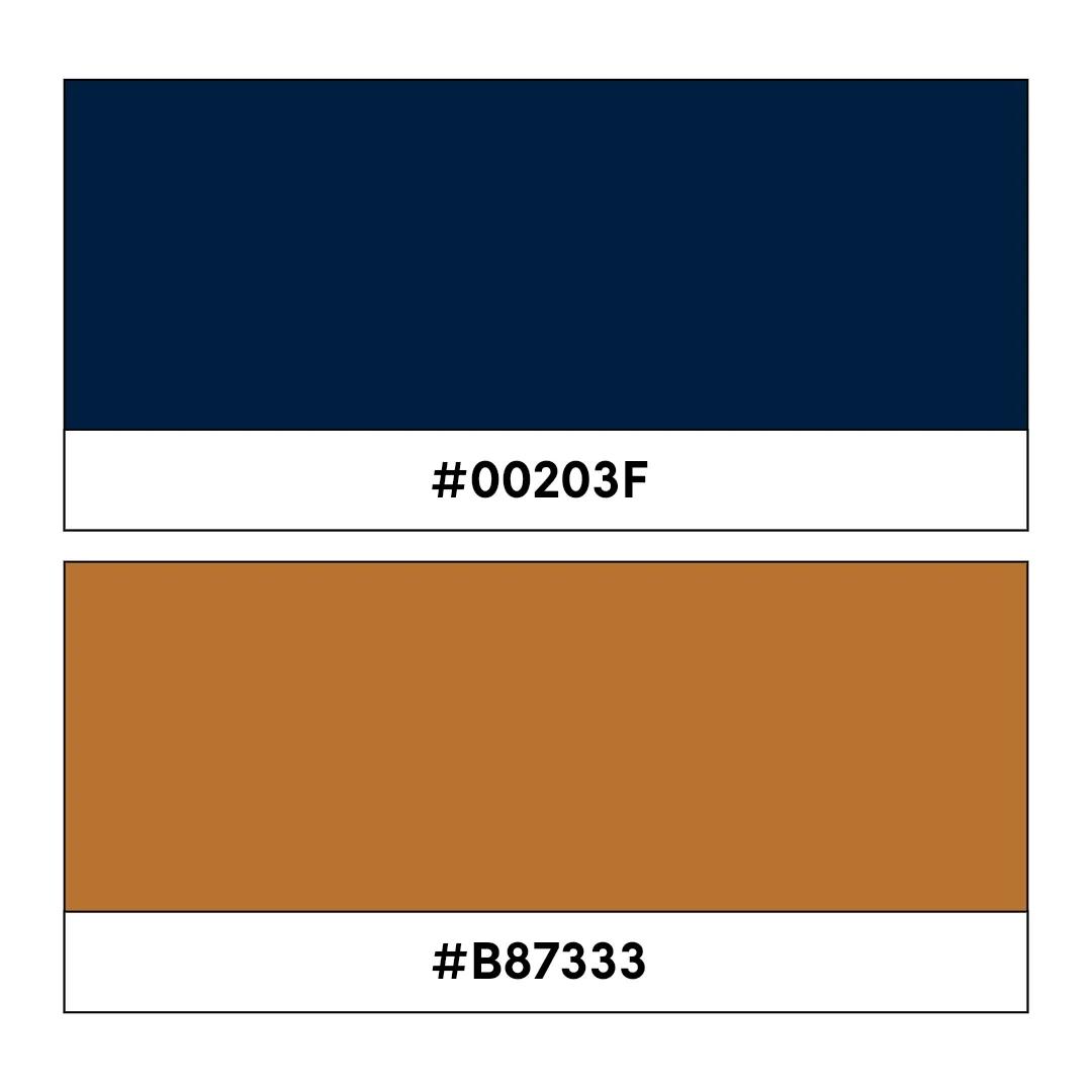 This stunning two-color combination serves up a sophisticated and modern feel. The deep navy blue provides a strong base while the copper adds real warmth and depth. It's a versatile choice for businesses in the luxury or premium goods sector.