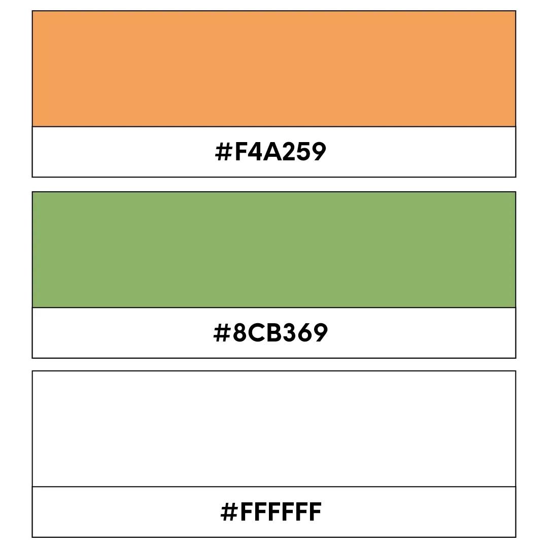 Orange code: #F4A259, Green code: #8CB369, White code: #FFFFFF