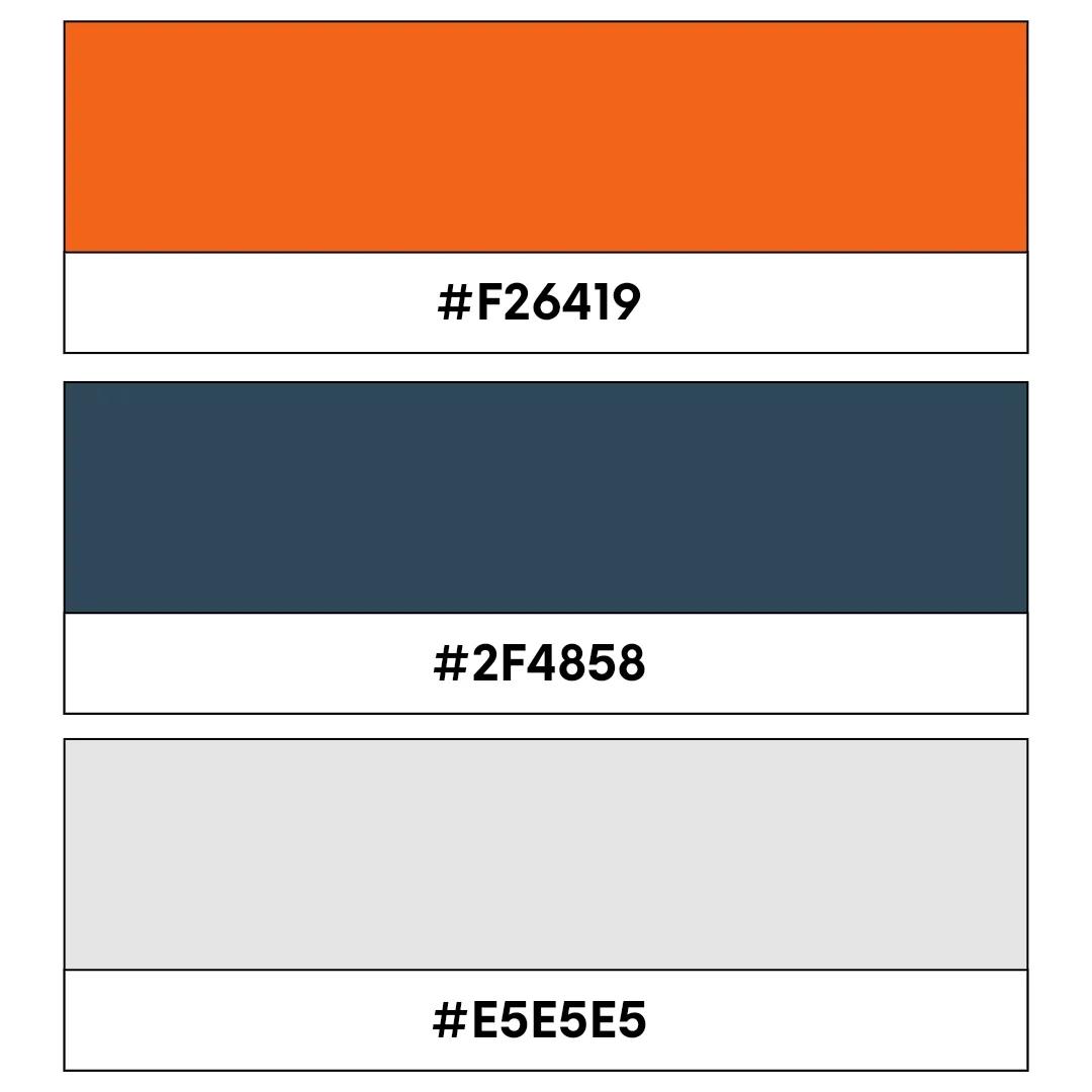 Orange code: #F26419, Navy code: #2F4858, Grey code: #E5E5E5
