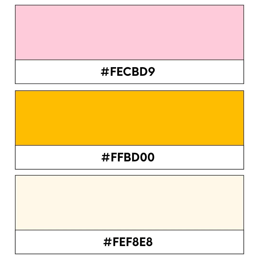 Pink code: #FECBD9, Gold code: #FFBD00, Cream code: #FEF8E8